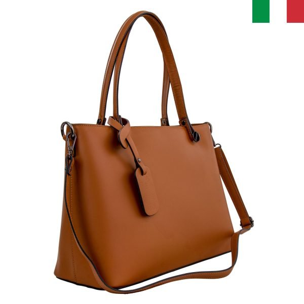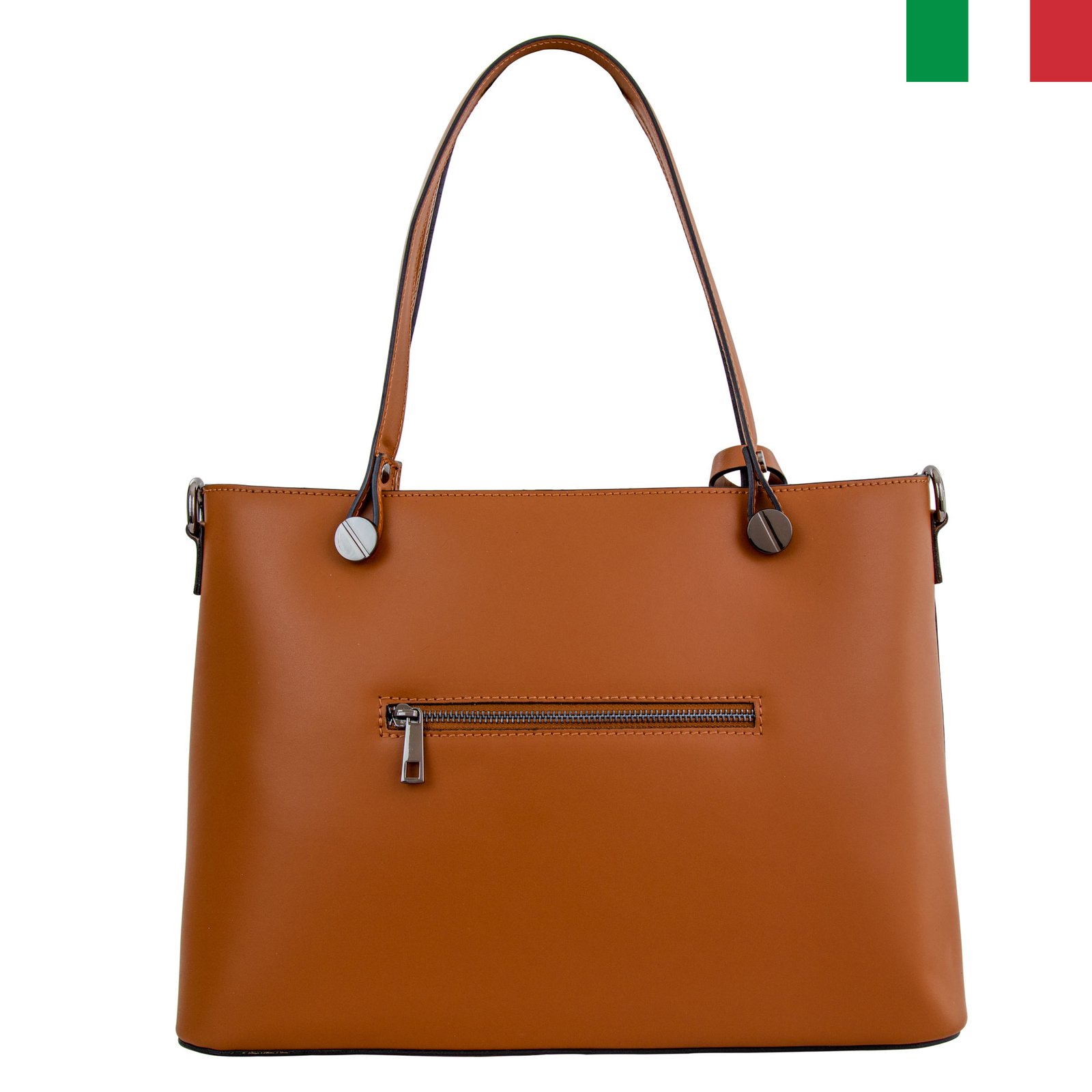 - Класическа дамска чанта, изработена от висококачествена естествена кожа в Италия. Чантата е със стилен изчистен дизайн, аксесоарите допълват визията и правят модела оригинален. Чантата е с две основни дръжки и една допълнителна регулируема дръжка. Има практично разпределение, затваря се с цип и има външен джоб на гърба с цип. Дамите с изтънчен вкус, разчитащи на класическата визия ще оценят модела.