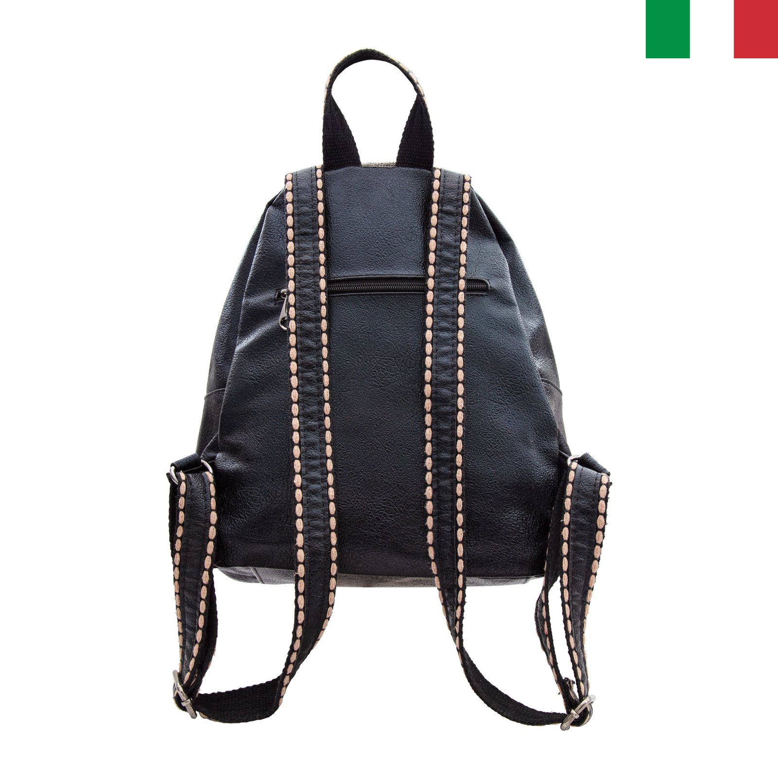 • Ефектна дамска раница, изработена от висококачествена еко кожа, с която няма да останете незабелязани.  Изключително лека и удобна.  Раницата има интересен дизайн и двойно закопчаване. Тя е с практично разпределение: