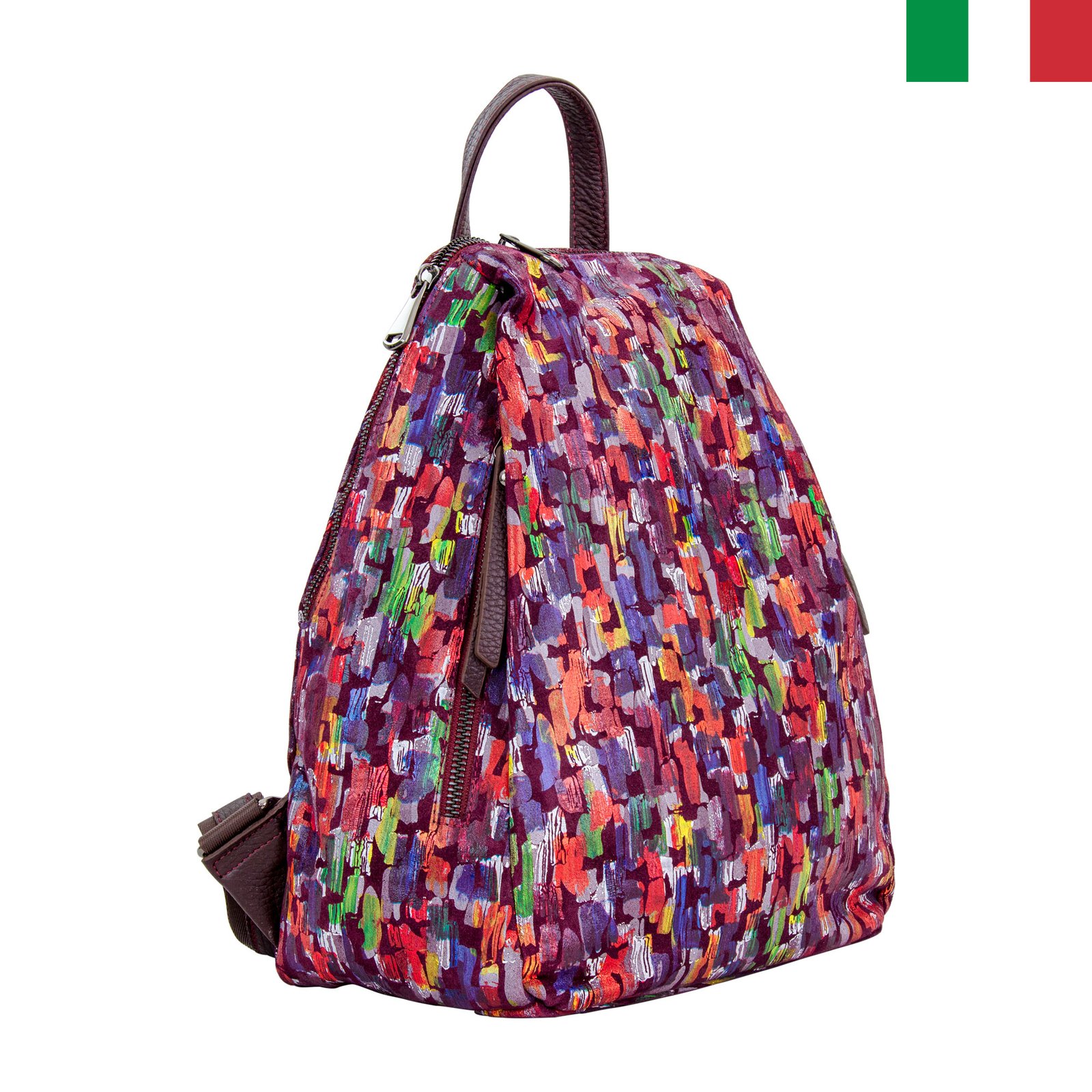 - Дамска раница, изработена от висококачествена естествена кожа “напа” с атрактивни разноцветни пръски по нея. Раницата е с италианско качество и дизайн! Практична и удобна за всекидневието! Има два джоба отпред, затварящи се с ципове, които допълват и дизайна. Основното отделение се затваря с цип, на гърба има вертикален джоб, с цип! Къса дръжка за ръка и регулируеми презрамки!
