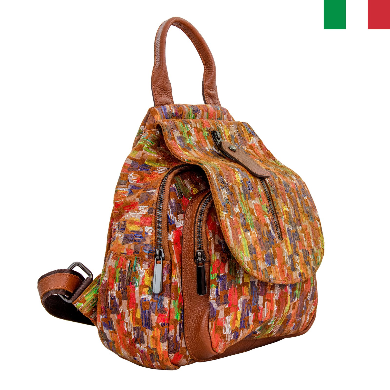 Дамска раница от естествена кожа с капак с цип – Пръски
