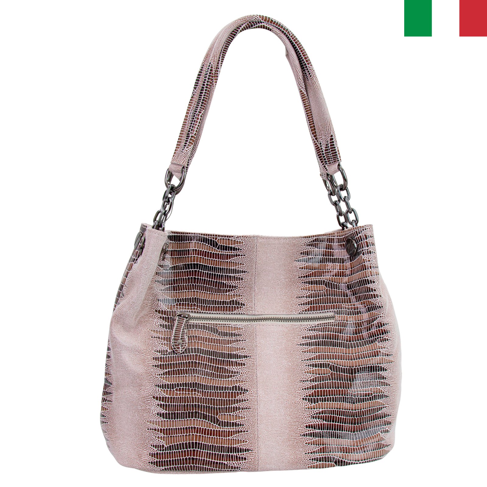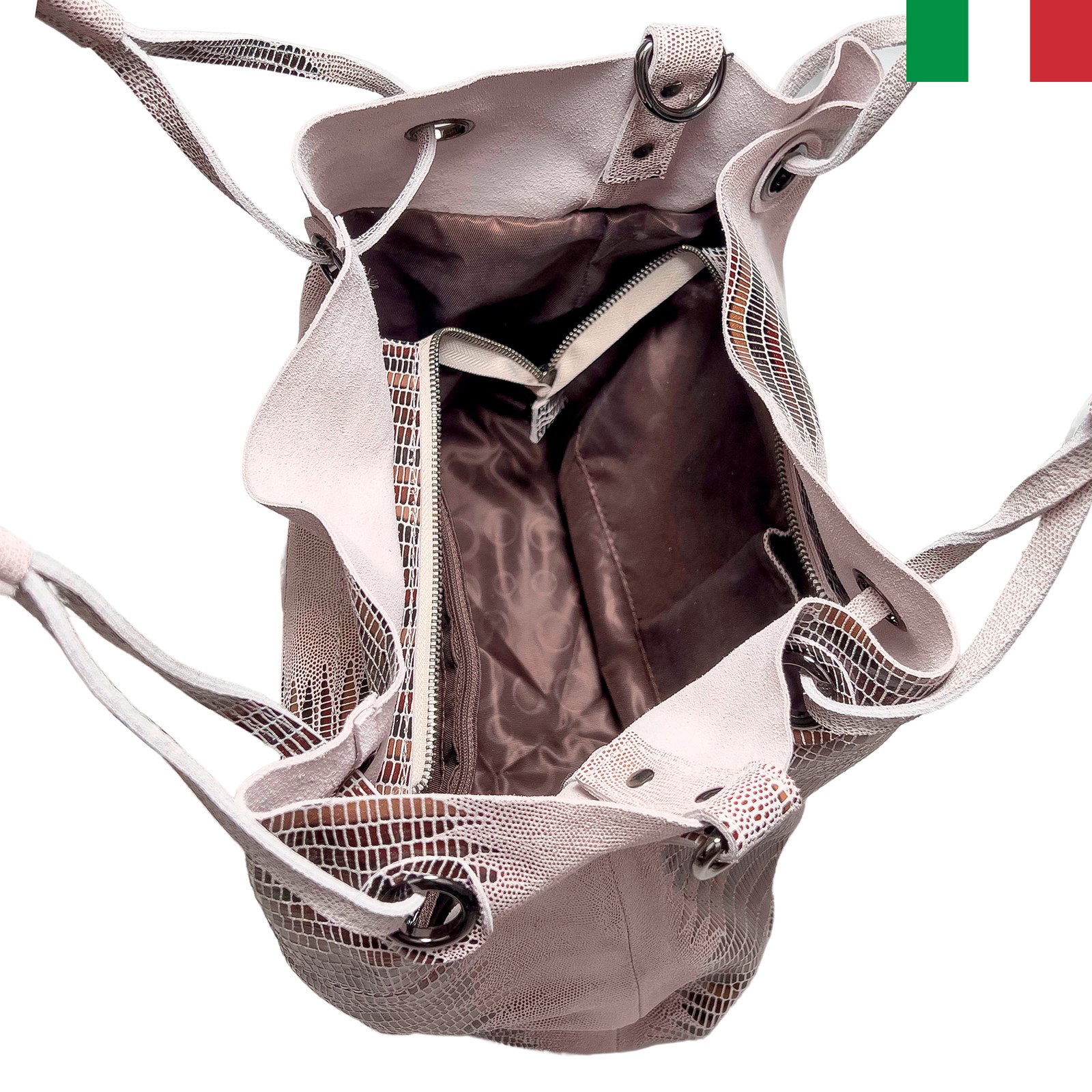 • Страхотна, ефектна, запомняща се! С тази чанта, изработена от висококачествена естествена кожа с лазерна обработка, няма да останете незабелязани! Произведена в Италия.