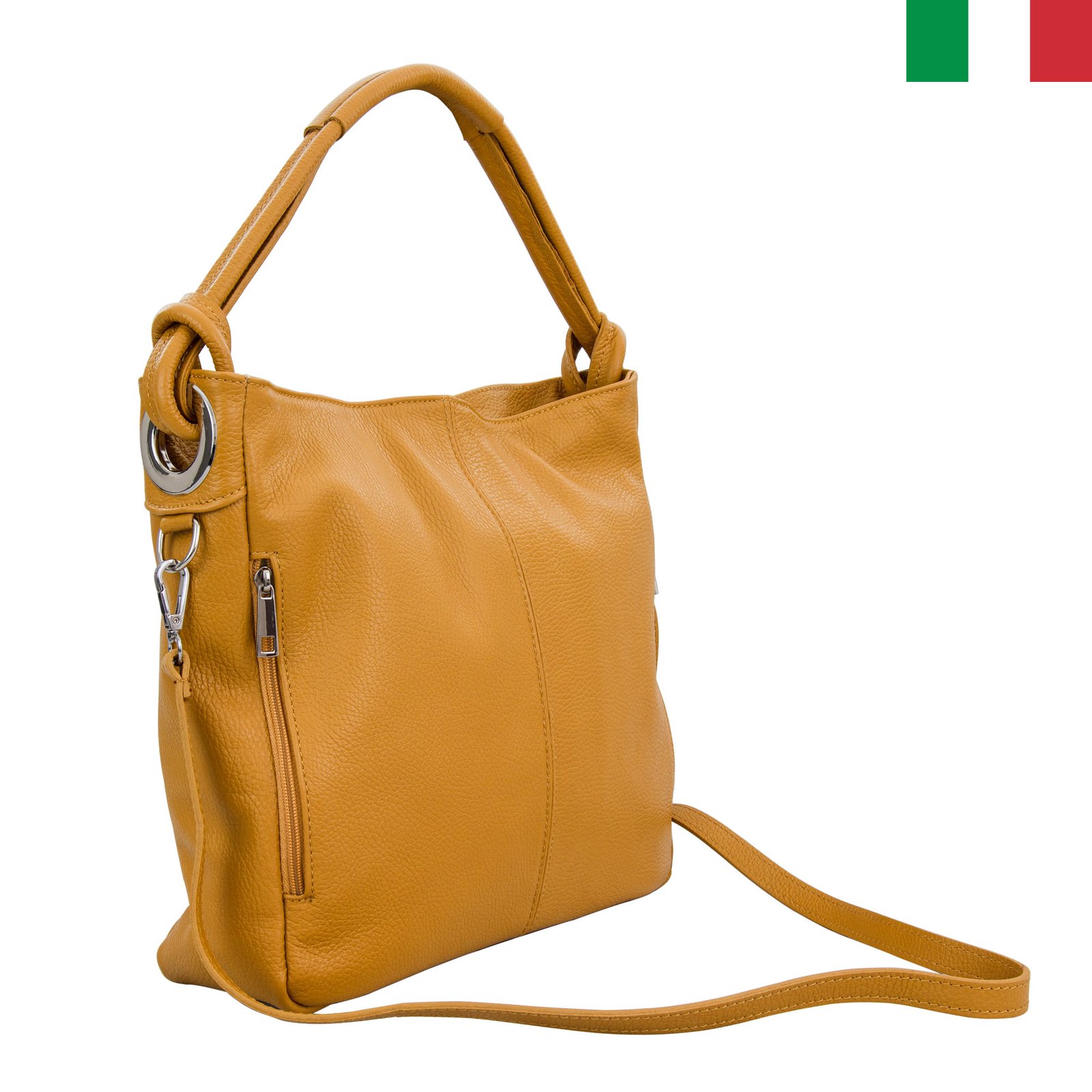 • Моделът е практичен и удобен за всекидневно носене, изработен е изцяло от висококачествена естествена кожа в Италия. Дизайнът е минималистичен и стилен, без излишни аксесоари и орнаменти. Чантата има една основна дръжка, която е с подходяща дължина за носене на рамо и допълнителна регулируема дръжка. Чантата е с удобни, практични джобове – два външни  джоба отпред, затварящи се с цип и един  външен джоб на гърба, с цип.