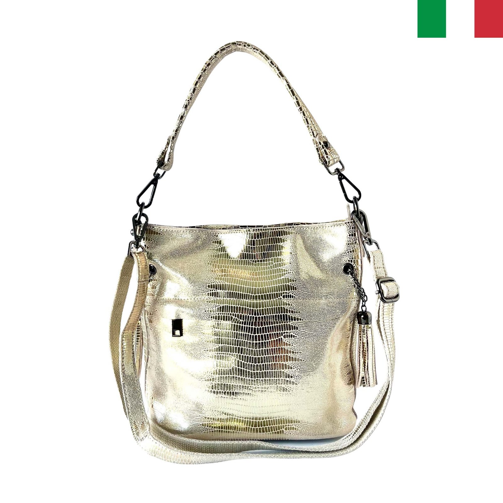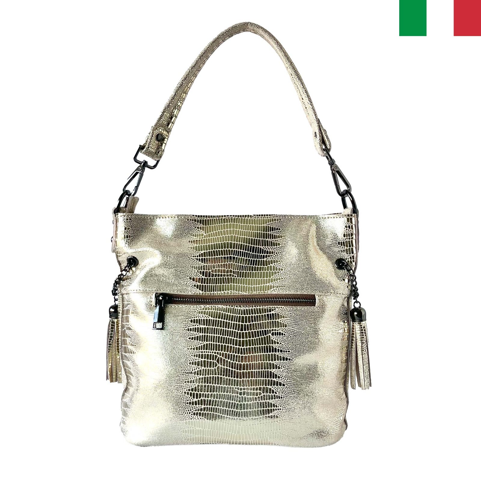 - Страхотна, ефектна, запомняща се! С тази чанта, изработена от висококачествена естествена кожа с лазерна обработка, няма да останете незабелязани! Произведена в Италия.
