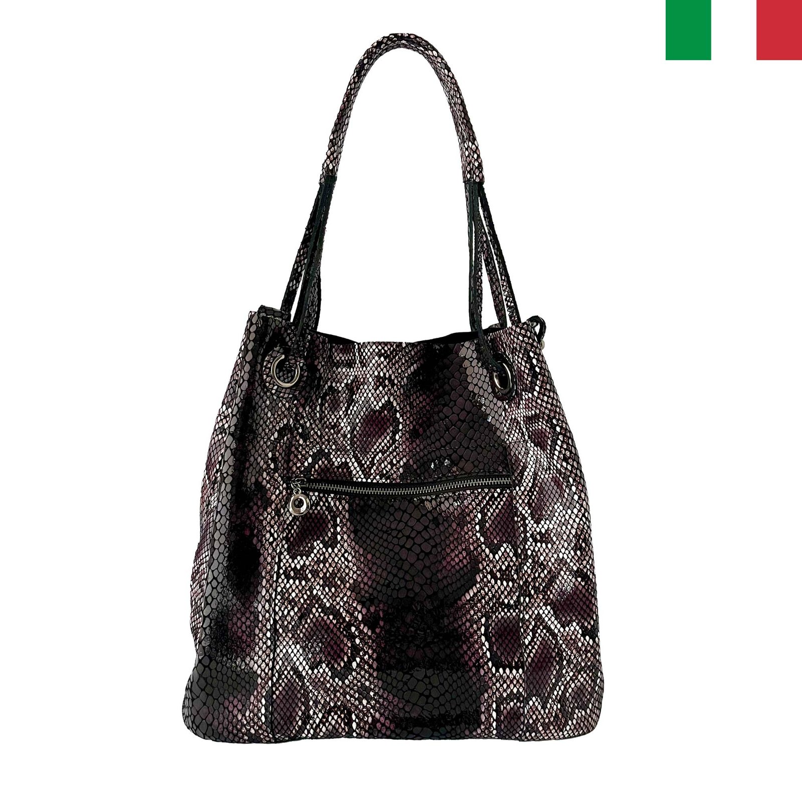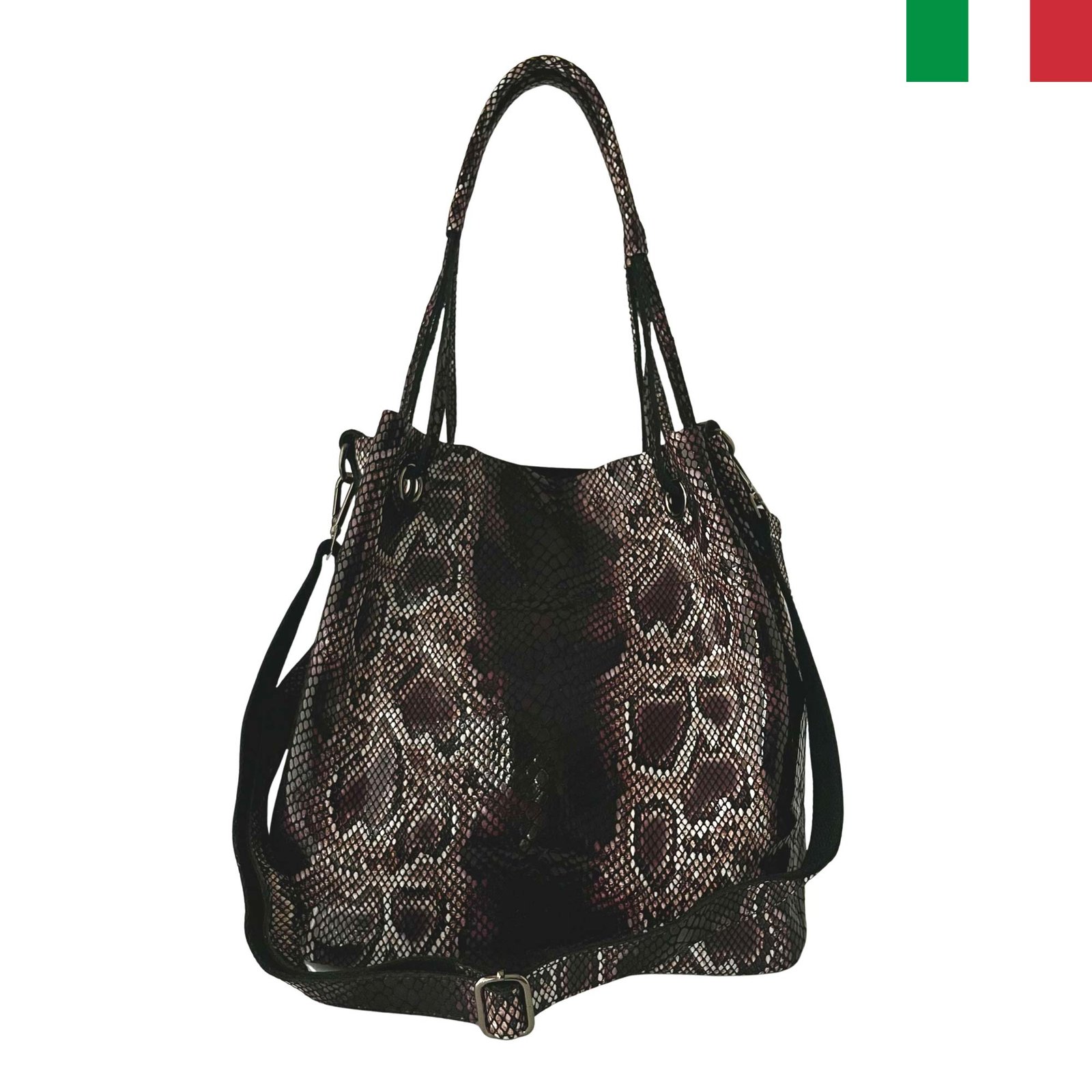 Дамска чанта тип “торба” от естествена лазерно обработена кожа – змийски черно