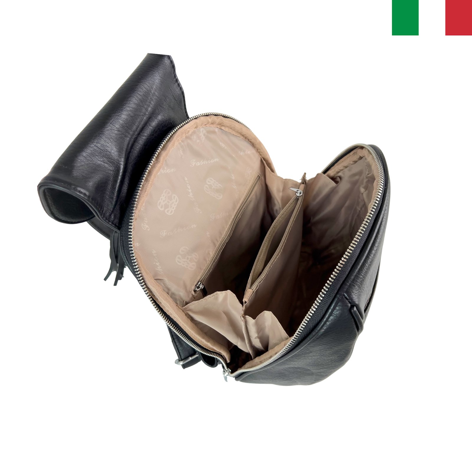 - Удобна и практична средна по размер раница, с класическа, но модерна визия. Ципът се отваря по цялото продължение на раницата и улеснява достъпа. Много практично вътрешно разпределение с две прегради. Изработена от висококачествена еко кожа.