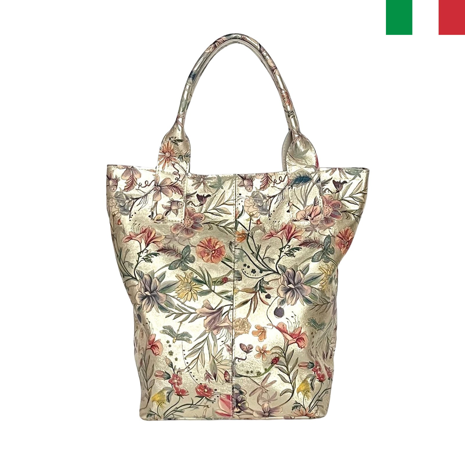 Голяма дамска чанта тип торба – цвят флорален-злато