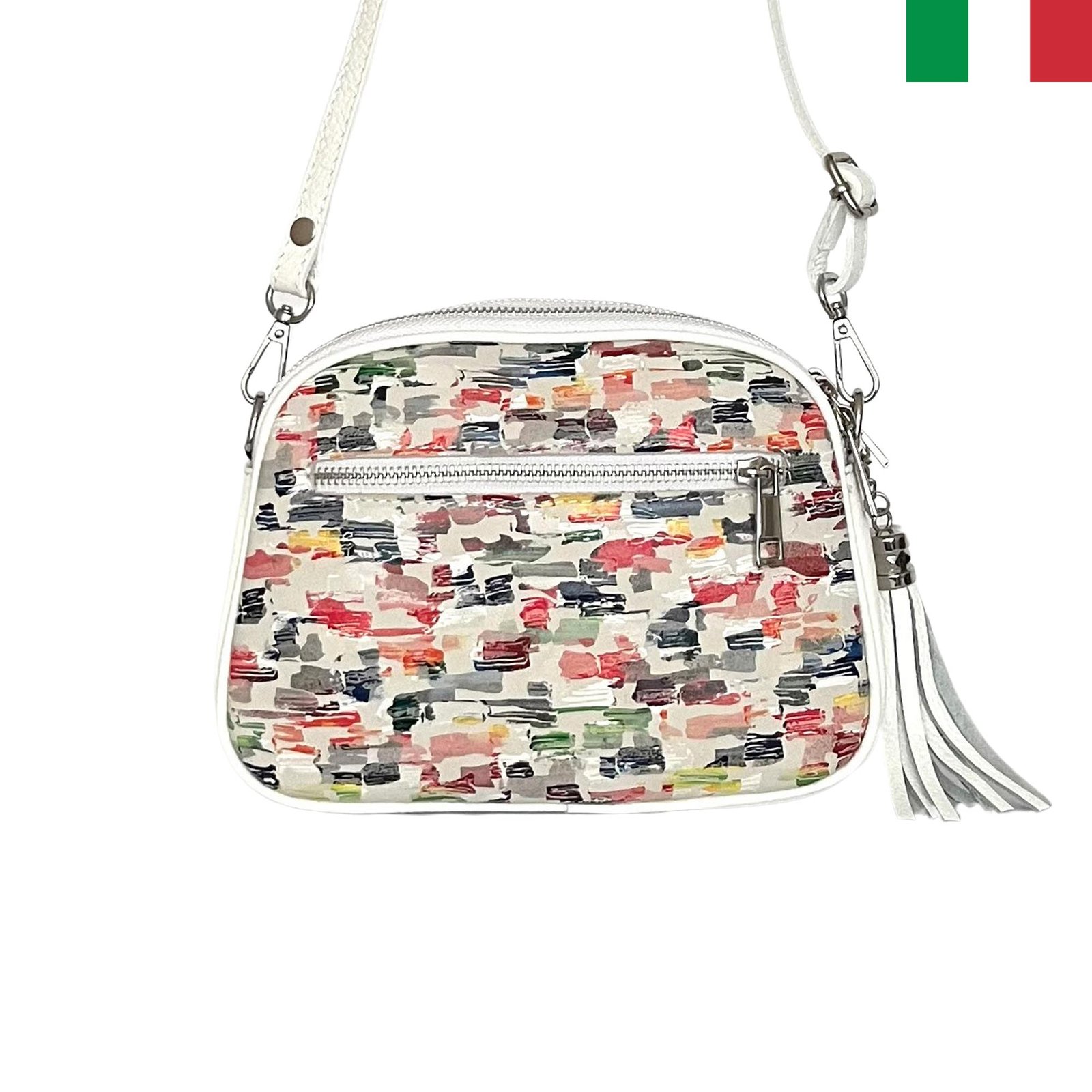 Дамска чанта от естествена кожа с три ципа – пръски/бял