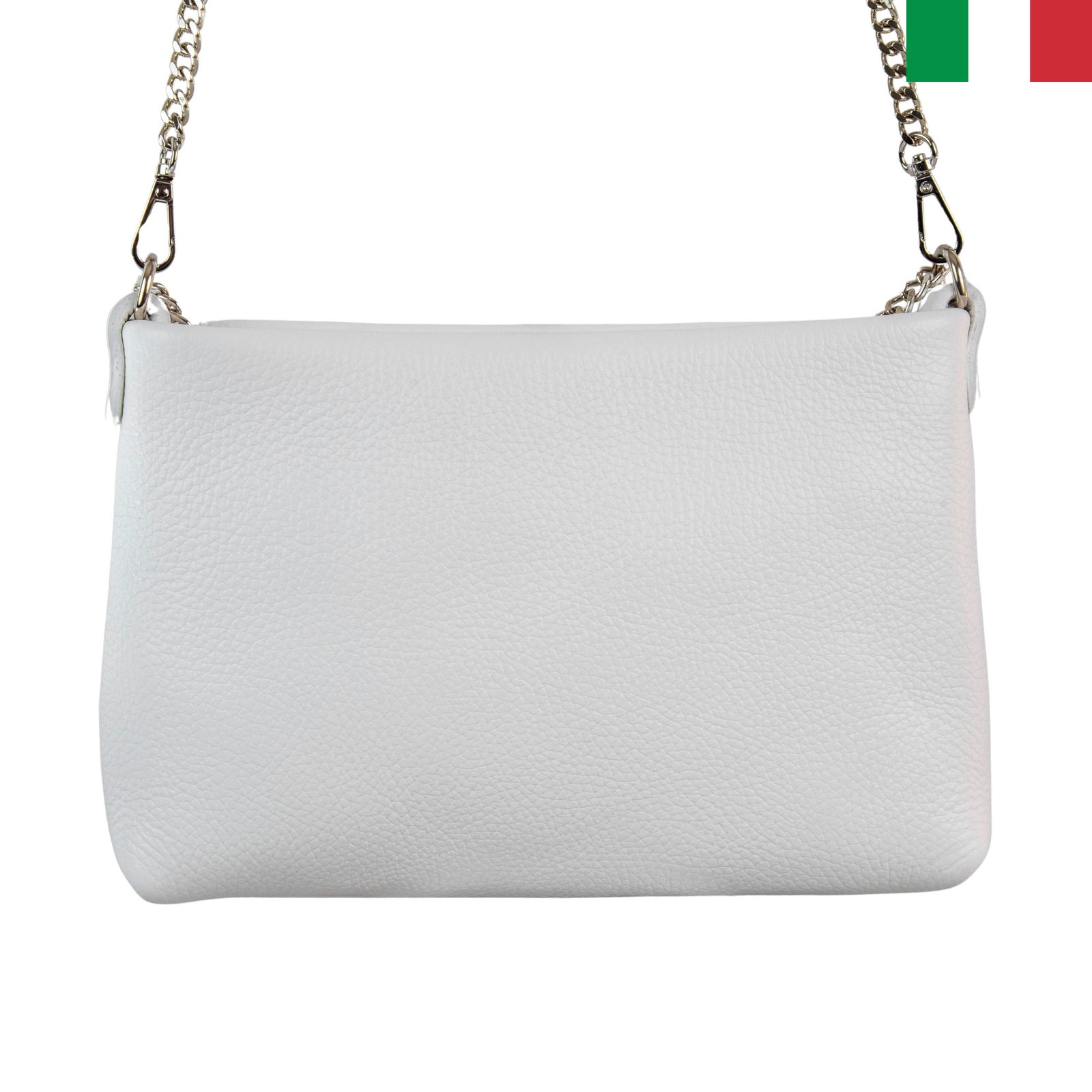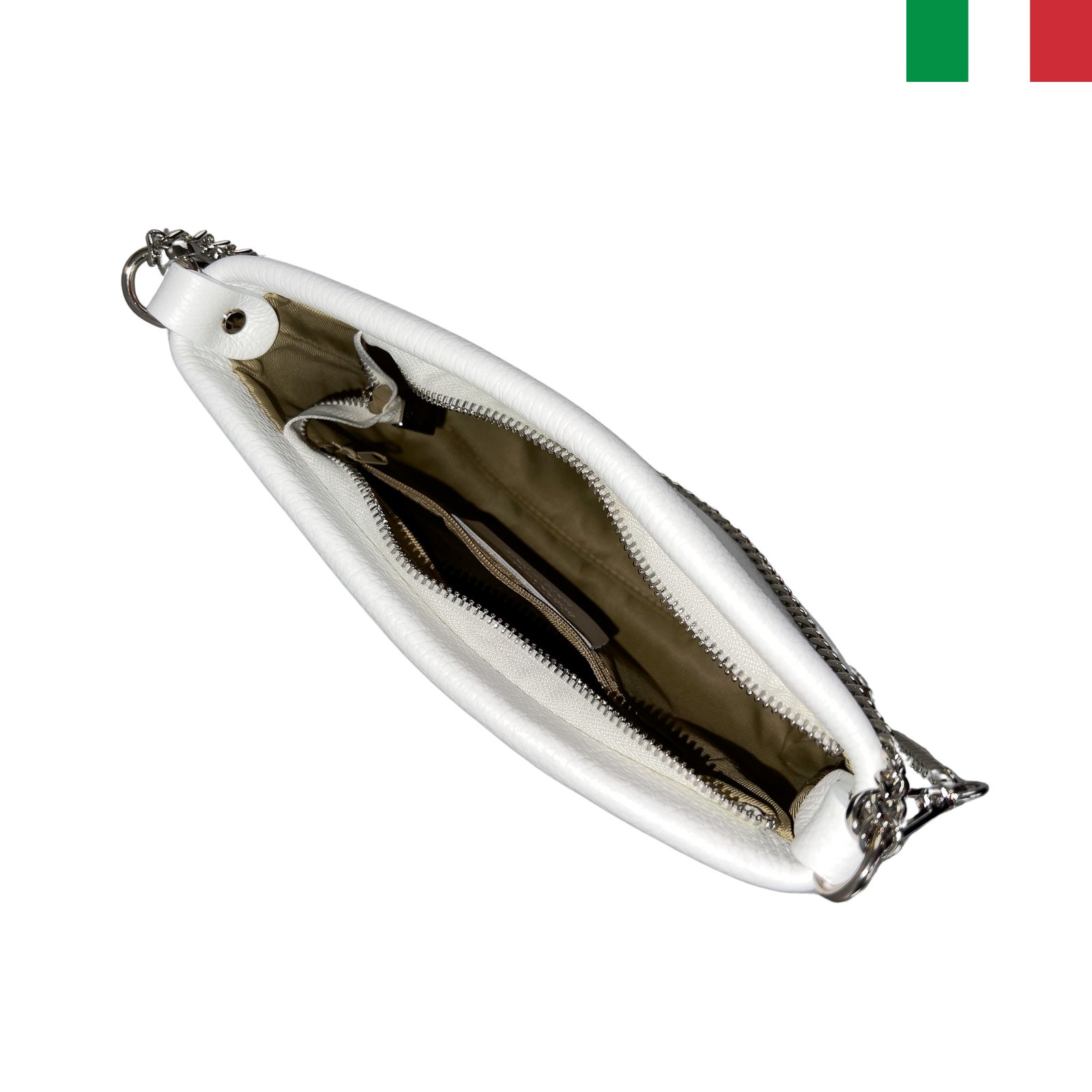Дамска чанта от естествена кожа през рамо с дръжка синджир – бял