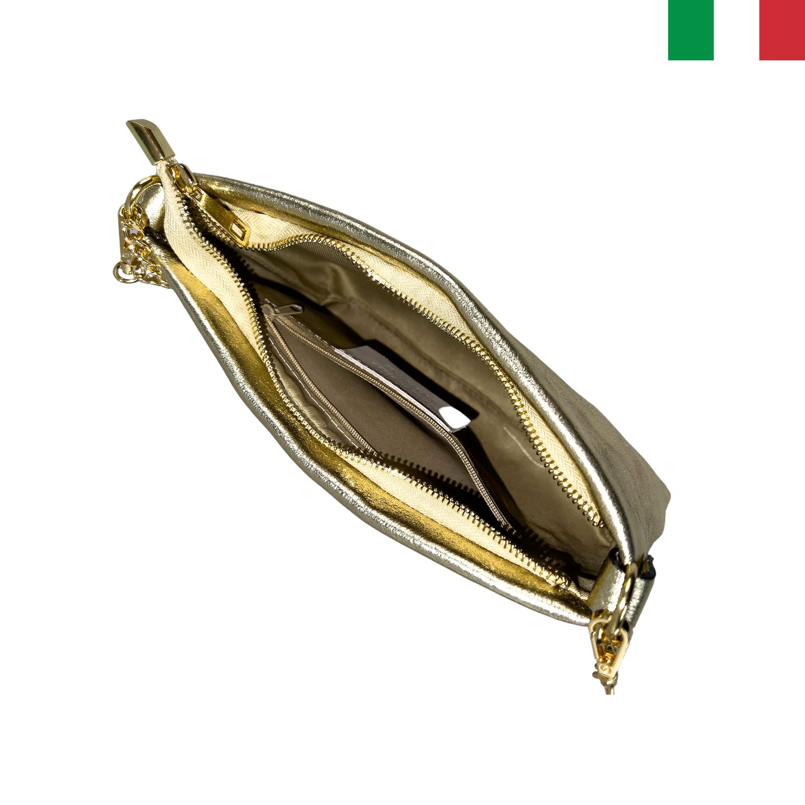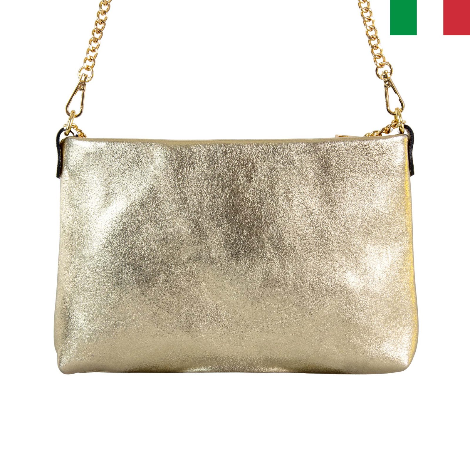 Дамска чанта от естествена кожа през рамо с дръжка синджир – златист