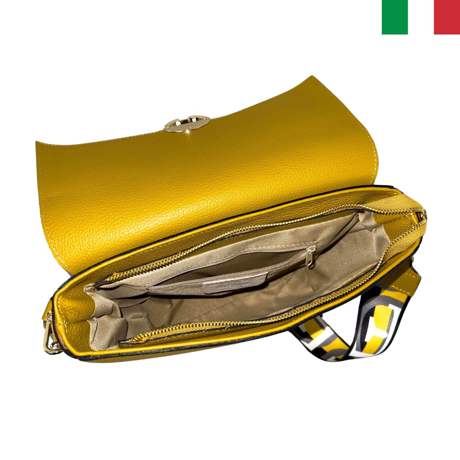 - Стилна и изключително модерна ще е визията Ви с тази чанта! Изработена изцяло от висококачествена естествена кожа в Италия. Чантата е със стилен, изчистен дизайн. С по-късата дръжка можете да я носите на рамо, а ако желаете можете да я свалите, за да я носите през тялото с дългата регулируема текстилна дръжка.