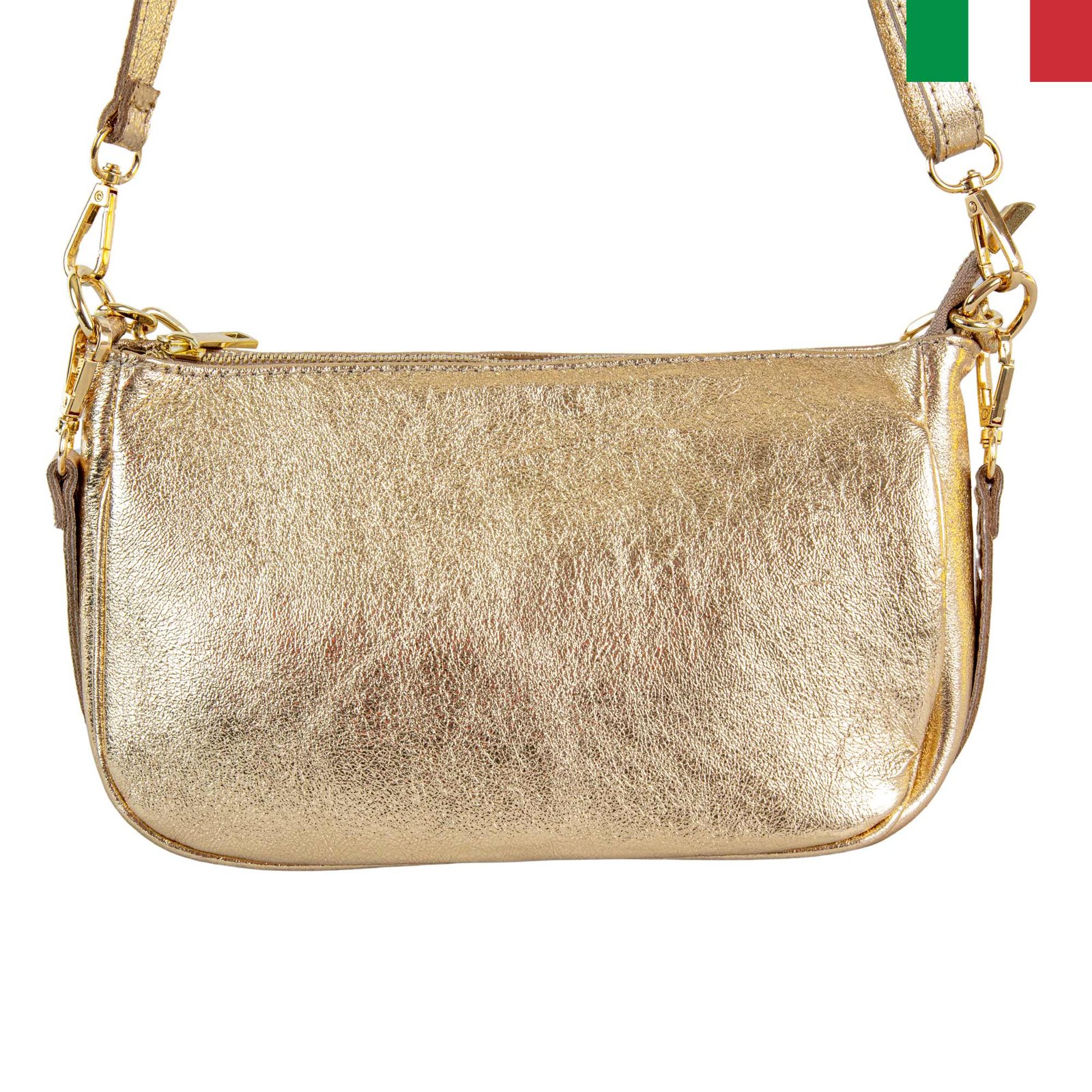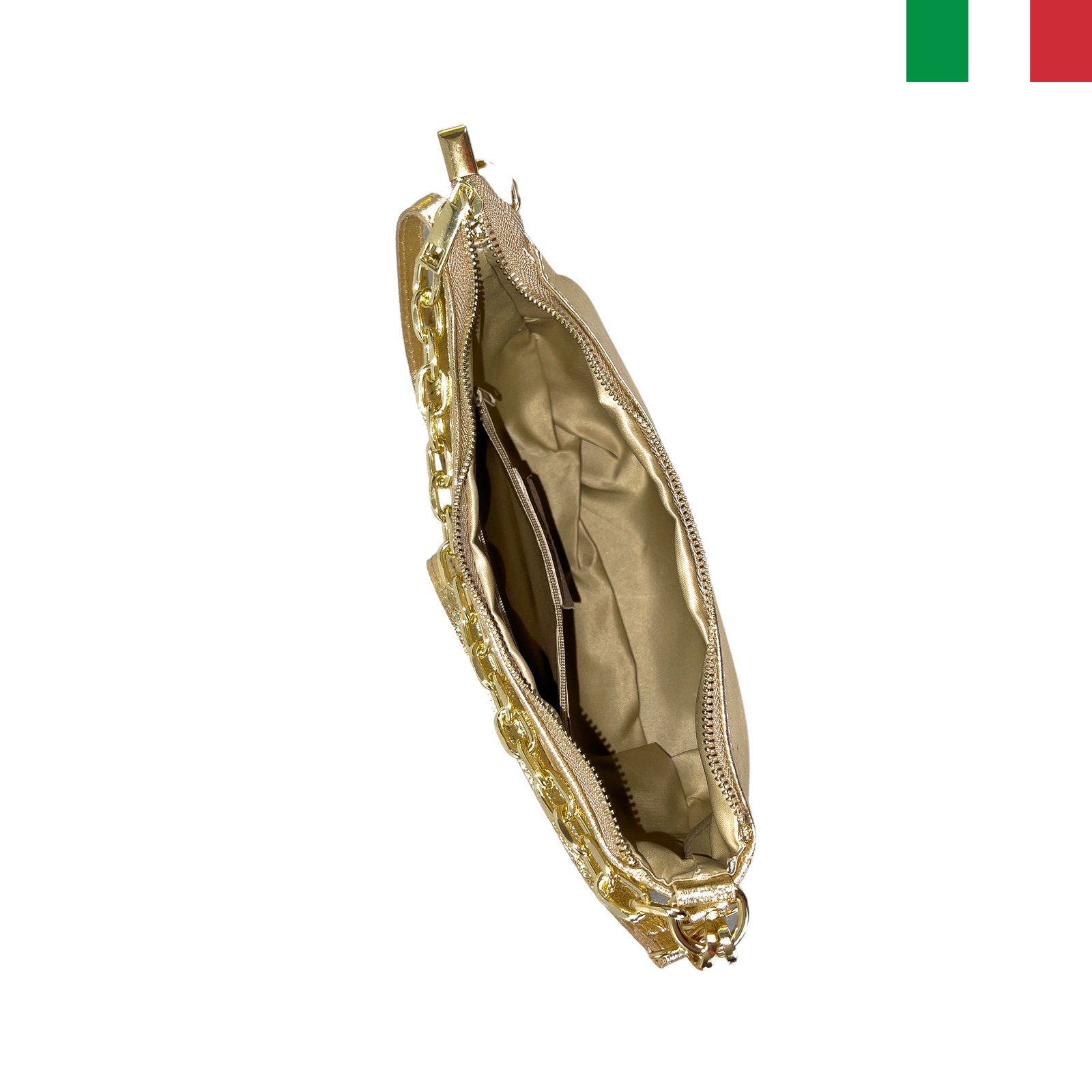 Дамска чанта от естествена кожа през рамо със синджир – злато
