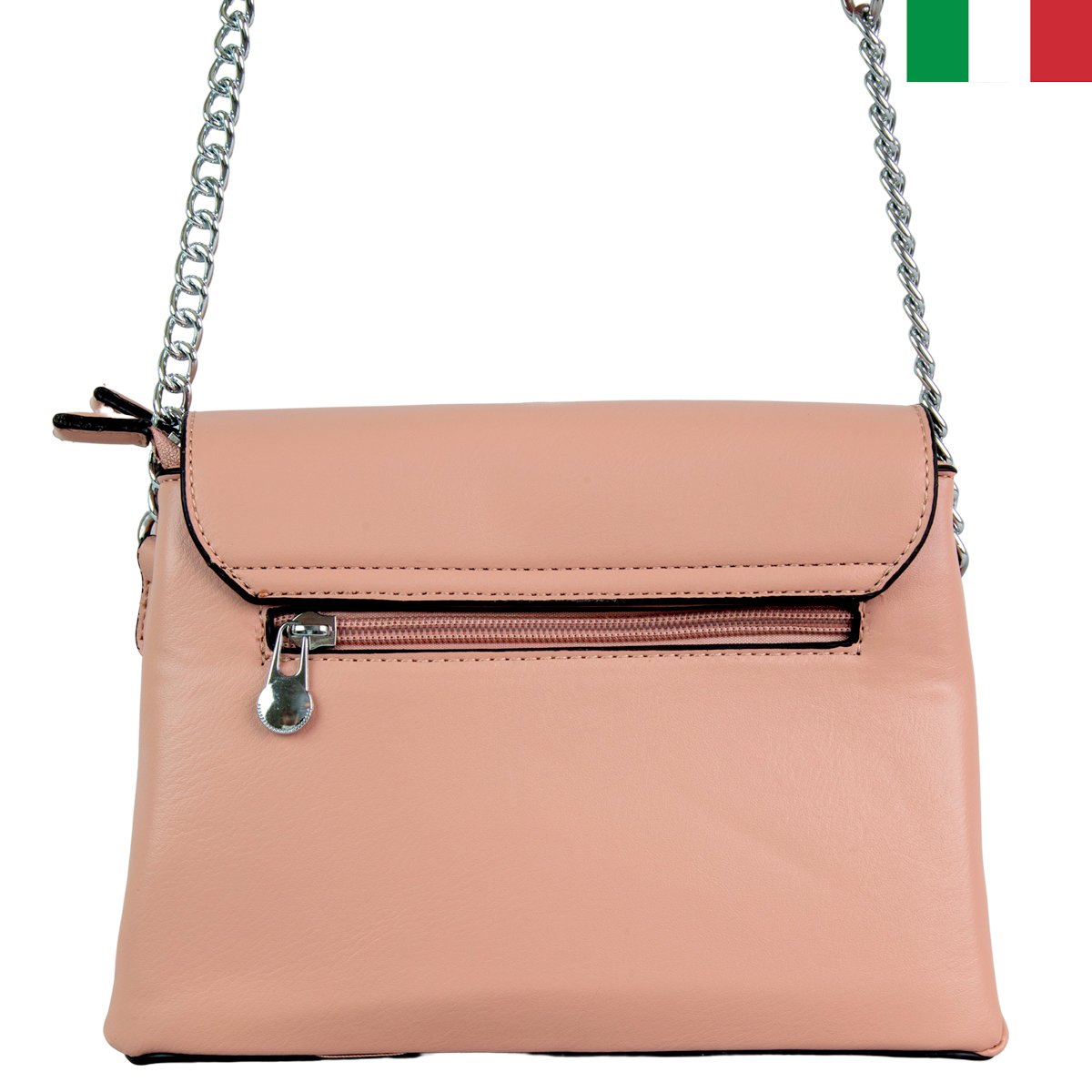 - Удобна и практична малка, елегантна чантичка. Подходящо допълнение към вашата визия. Част от дръжката от двете страни е с актуални синджирени елементи. Много практично вътрешно разпределение с две прегради. Изработена от висококачествена еко кожа.
