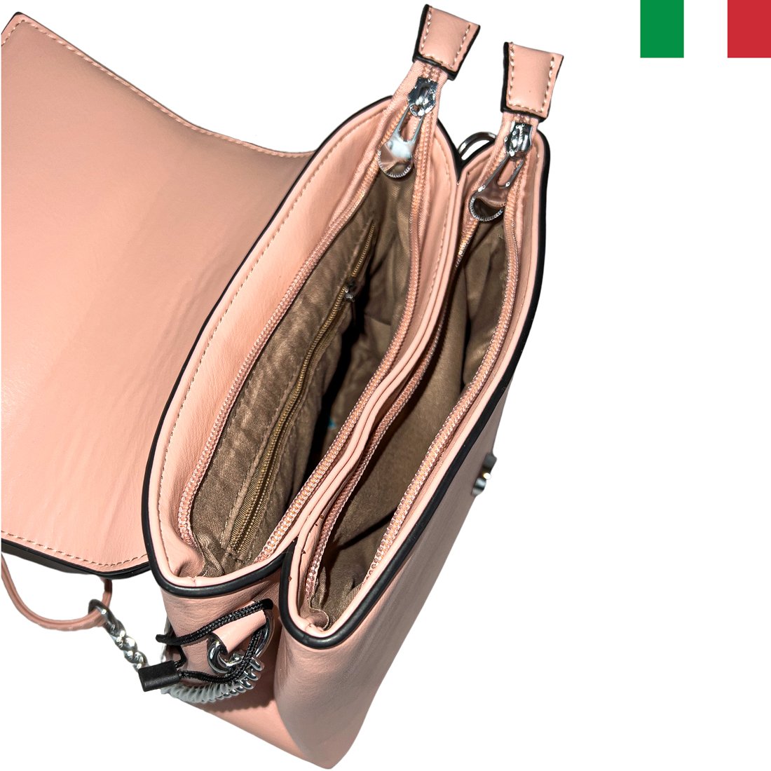 Стилна малка дамска чанта от еко кожа с капак и две вътрешни прегради – цвят розов