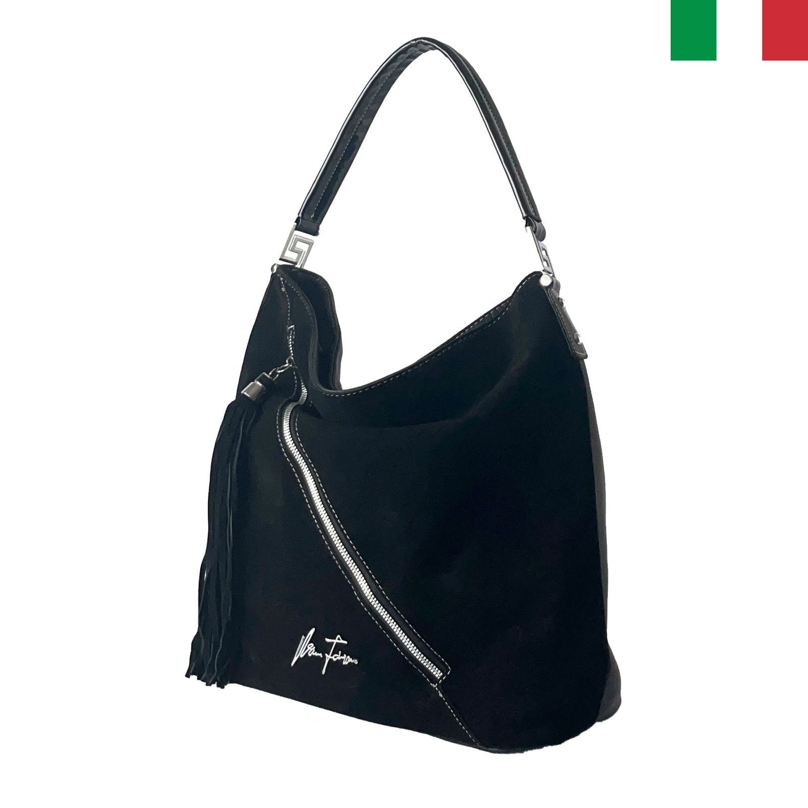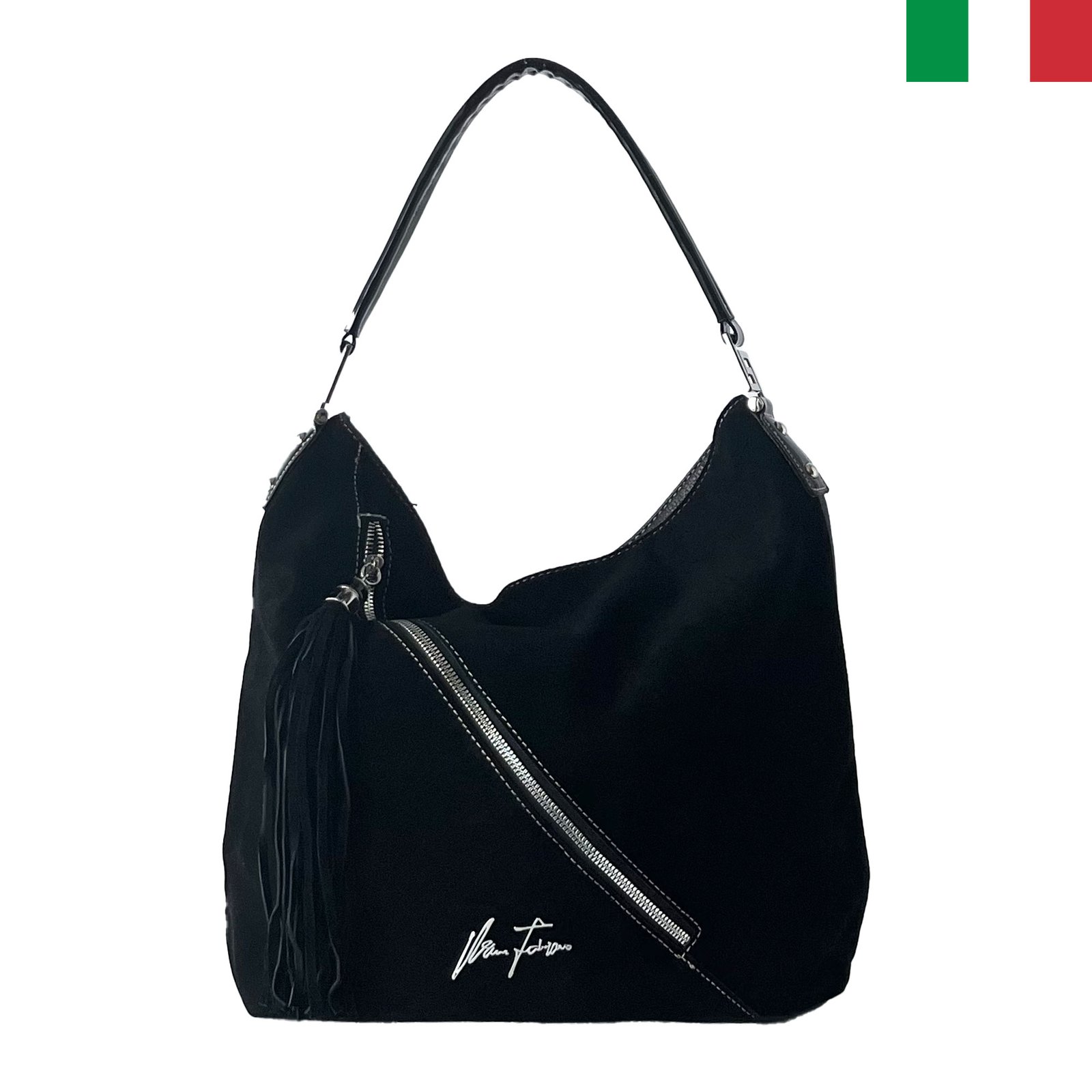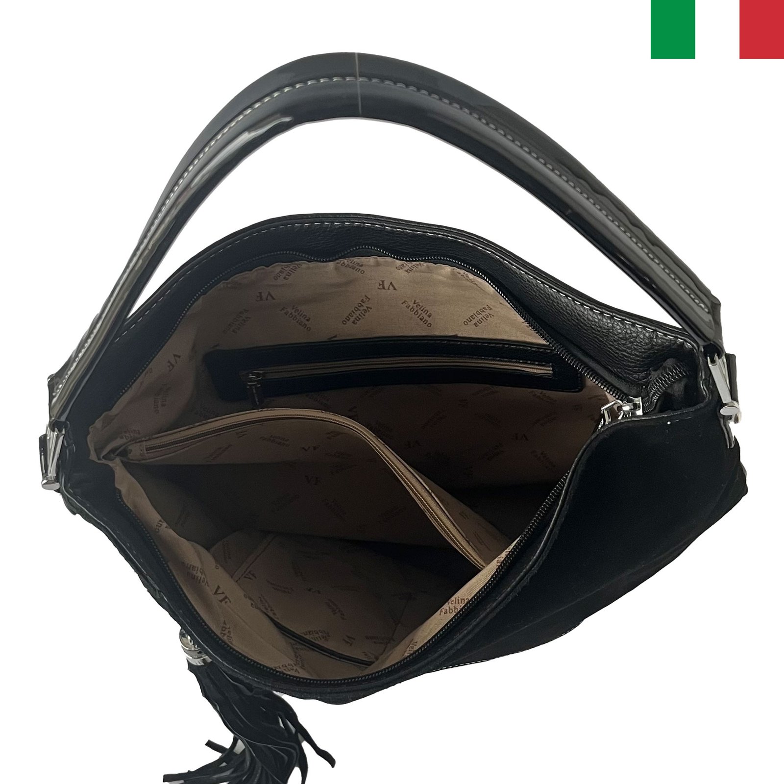 Дамска чанта “Velina Fabbiano” от естествен велур и еко кожа с аксесоар от ресни