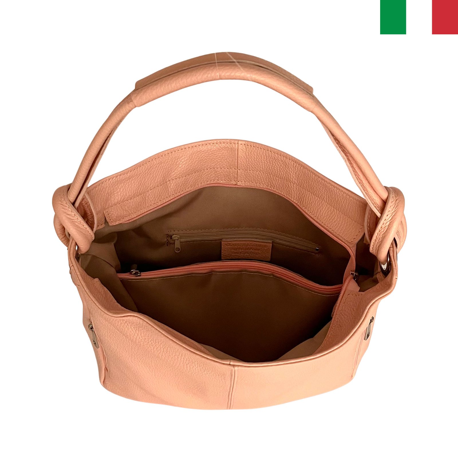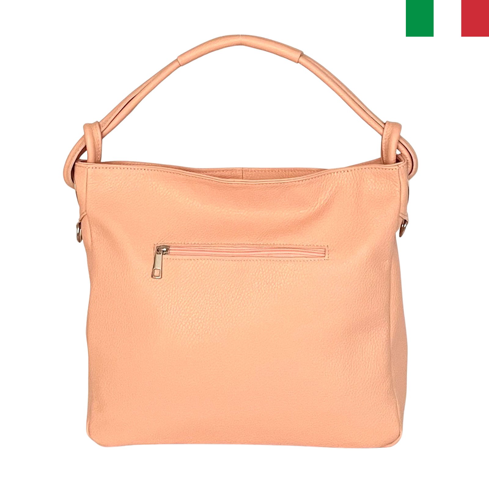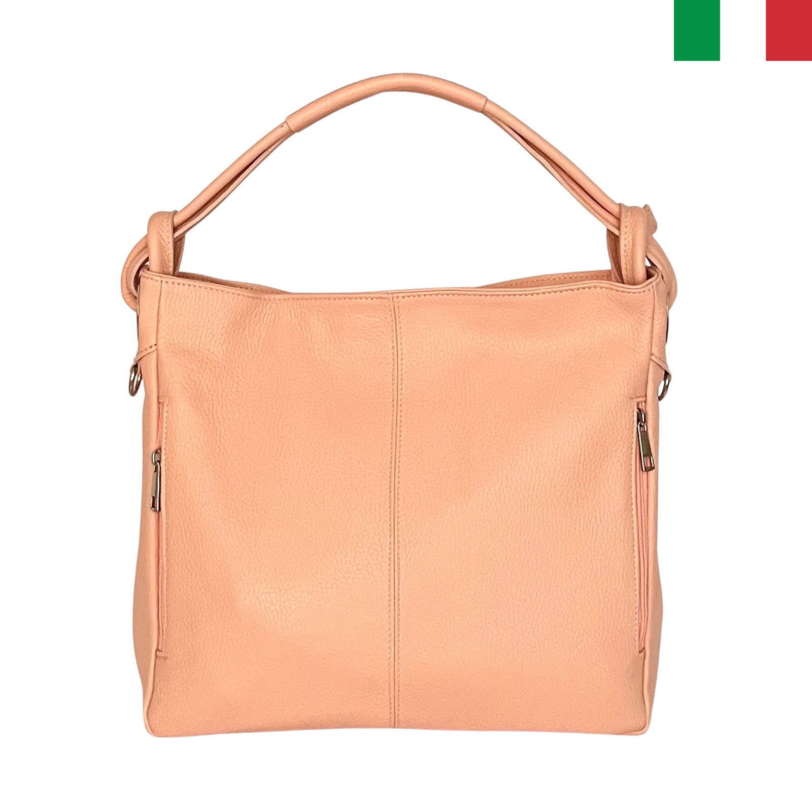 Дамска чанта тип “торба” от естествена кожа и възли на дръжката – Праскова
